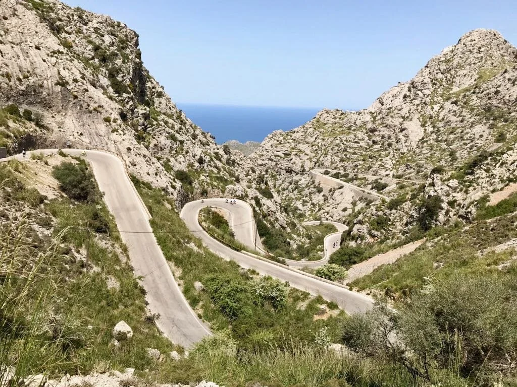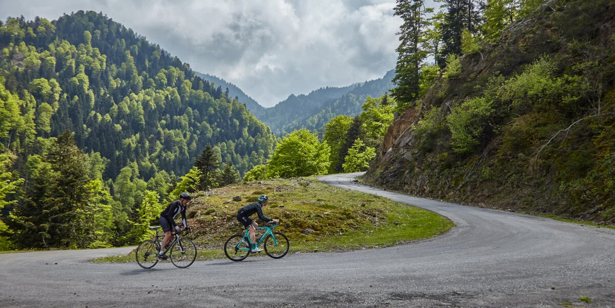When negotiating hairpins or other sharp bends remember that you initiate the turn by simply leaning your bike, don’t try to steer, simply lean your bike, focus on that later apex and let gravity do the rest. It can feel intimidating at first but trust this technique and you’ll find that it works. That will give you the confidence to trust your newly acquired skills and, as you know from previous blogs, confidence when cycling is king (or queen)!